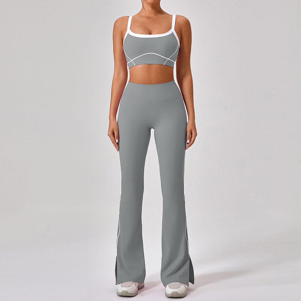 Amazon New Women’s Outdoor Sports Bra Set Contrast Color Strap Tank Yoga Top Bottom Bare Feel Tight-Fitting Activewear